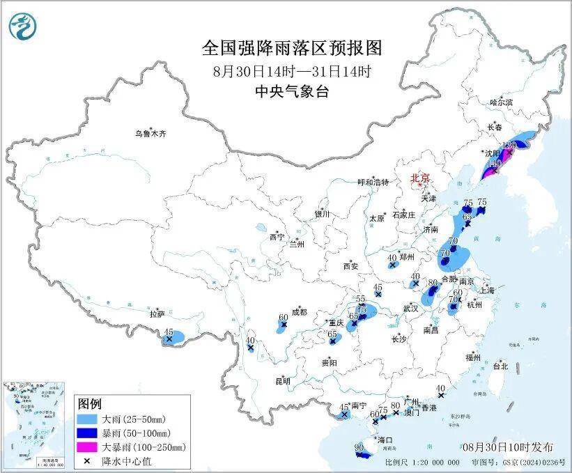 中央气象台8月30日10时发布暴雨蓝色预警: