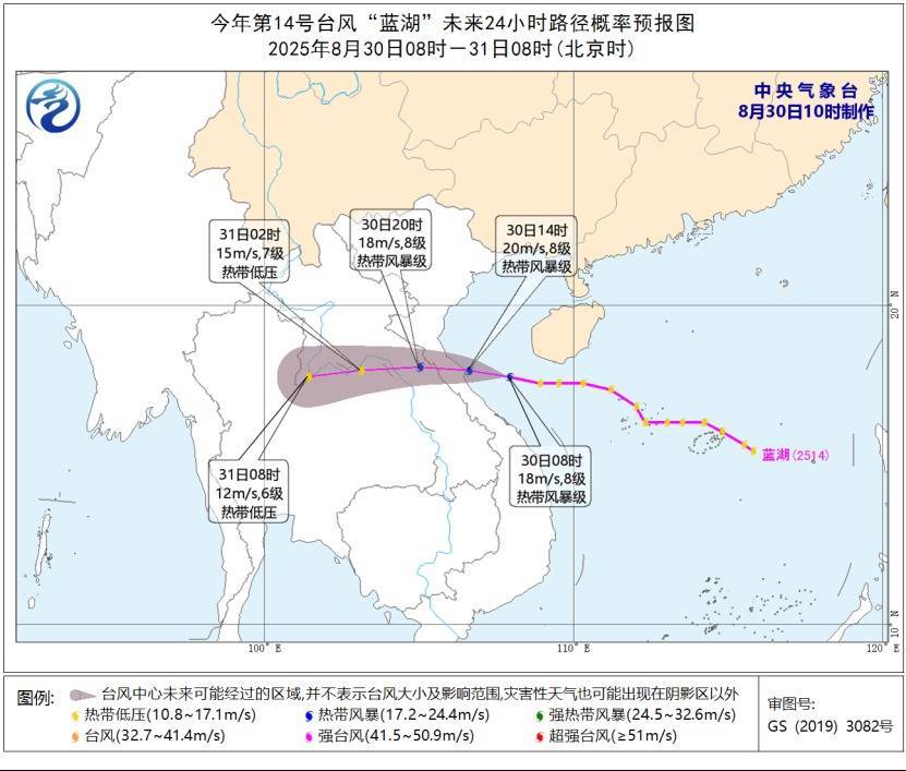 中央气象台8月30日10时发布台风蓝色预警:
